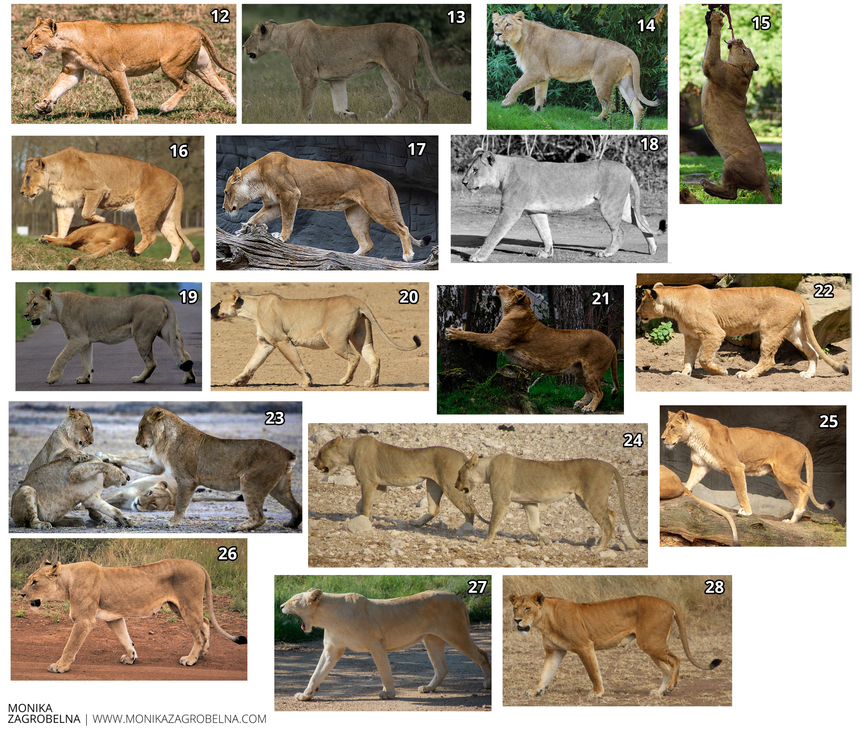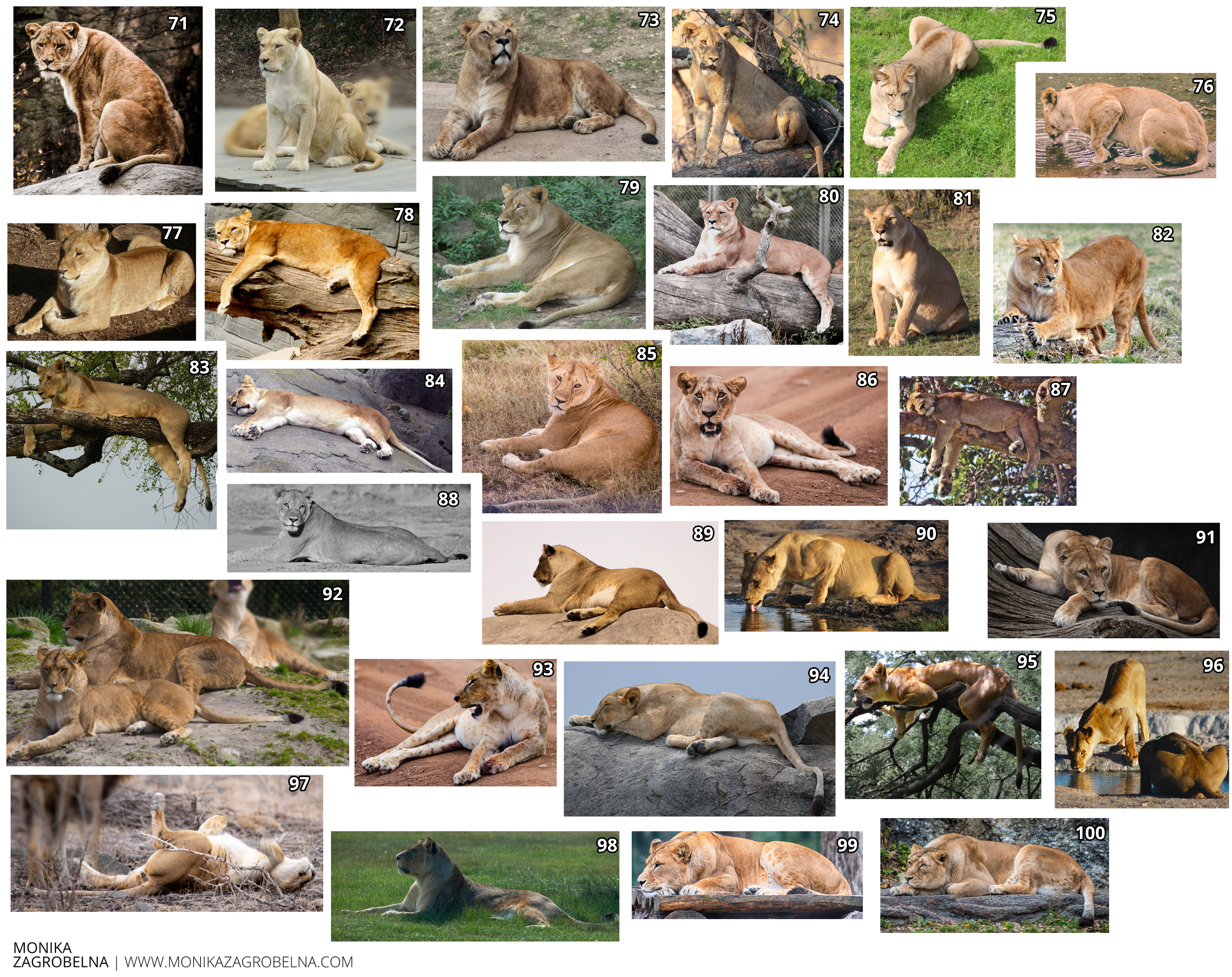 So let me help you! I’ve prepared a collection of 100 photos, separated into 5 groups of increasing difficulty. They come from free stock photos like Pixabay, Unsplash, and Pexels, so you’re free to use them however you want—even if you decide to create a finished drawing out of them. For now, this is a collection of lionesses only, but it will be useful for every animal artist.